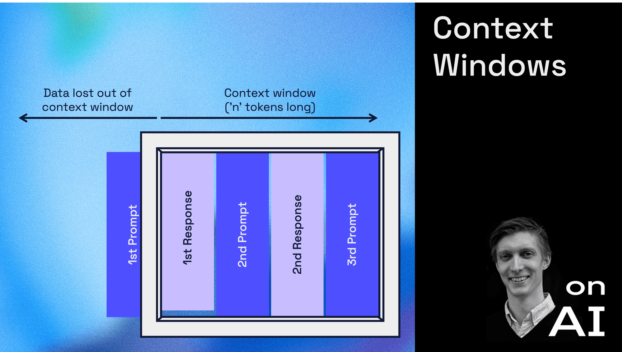För att förstå varför kontext är så centralt behöver man förstå hur modellerna faktiskt arbetar. När du skriver ett meddelande skickas inte bara din senaste fråga in i modellen. Hela konversationen paketeras om till tokens och matas in varje gång modellen ska generera ett svar. Det finns alltså inget separat minne som växer över tid. Modellen "minns" bara det som får plats i det aktuella fönstret och allt annat faller bort. Det är därför en modell ibland verkar tappa tråden trots att man själv upplever att man bara fortsätter där man slutade.